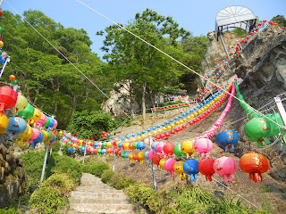 Monday was spent in preparation for the afternoon ceremony and performance in honor of Buddha’s Birthday. It is one of the biggest holidays in Korea (and many other Buddhist countries) which follows the Lunar Calendar so the celebration falls on a different day every year. I helped carry paper lotus lanterns up the giant hill to the temple where they were hung, shucked the hulls from bean sprouts, and assisted in manning the donation box and the pinning-on-of-flowers for visitors paying their respects.